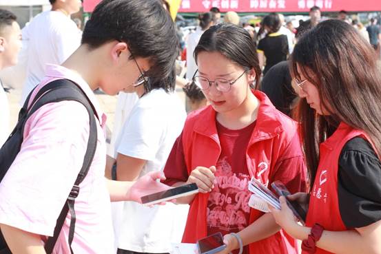 学生积极参与迎新工作。他们热情阳光,耐心引导每一位新生与家长,成为这场迎新盛宴中最温暖的风景线。