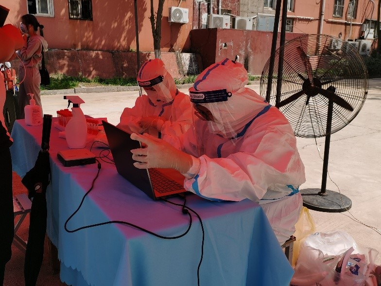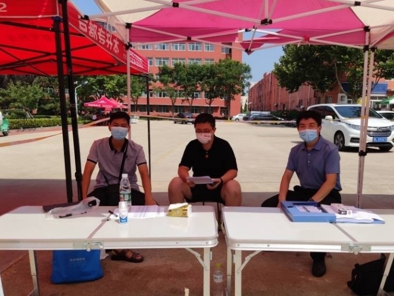 志愿者认真细致查验返校学生身份,核收48小时核酸检测报告、十四天体温监测表和曲阜师范大学学生防疫承诺书,引导同学们进行返校登记、核酸检测、等待隔离。他们以真诚热心的服务态度与严谨踏实的工作作风为返校同学们带来便利,充分彰显欧冠直播app