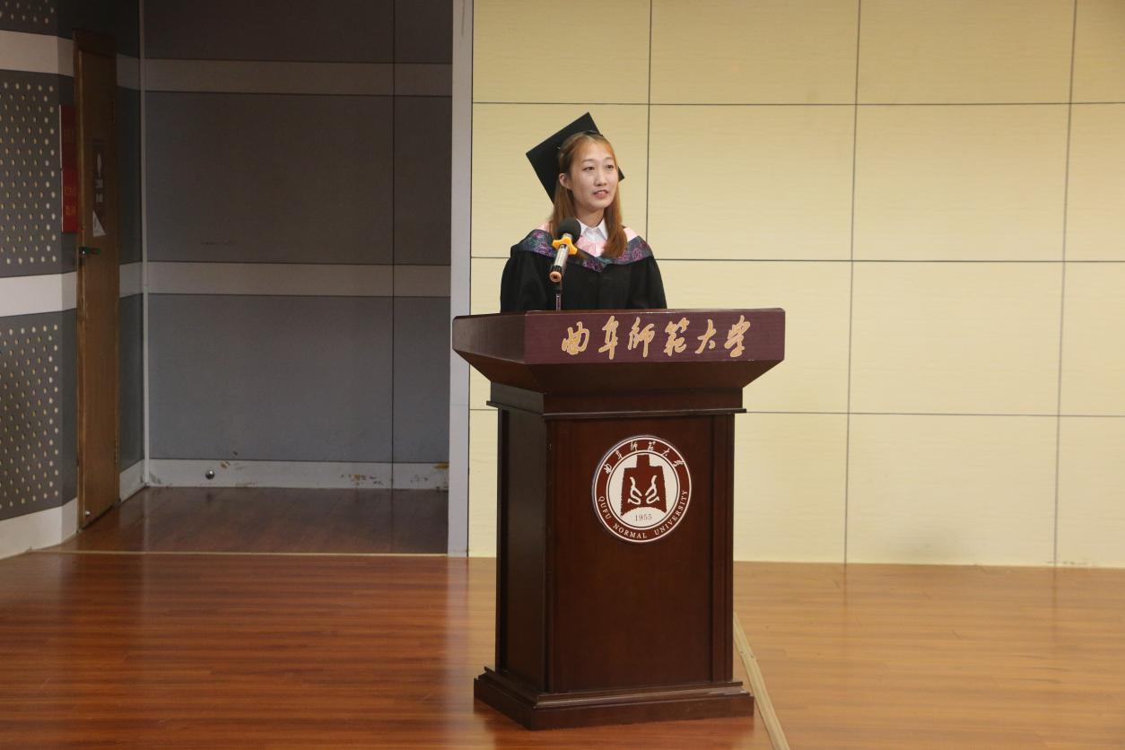 滕雅琳同学作为毕业生代表,回顾了求学期间的点滴故事,表达了对学校、欧冠直播平台