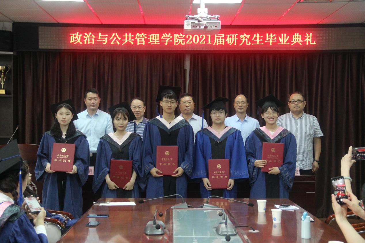学位分委员会成员分别为毕业生授予硕士毕业证和学位证,并与毕业生合影留念。