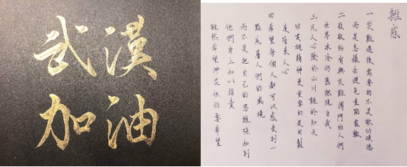 弘道宣讲团以及学部众多班级制作祝福视频,用声音的力量为每一座城市中惴惴不安的人们驱散阴霾;刘智杰、杨璐璐、庞雅慧、詹丽菲等同学也用书法、绘画的方式诠释拳拳赤子之心;马子训则用诗词表达了对武汉的美好祝愿和抗击疫情的决心和信心。