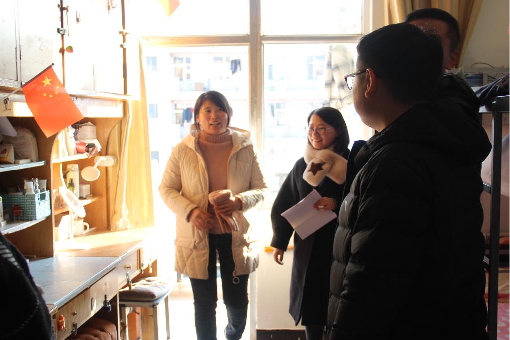 研究生宿舍整体情况良好,宿舍整洁,物品摆放有序,但也有个别宿舍物品摆放杂乱,存在卫生死角,宿舍内通风不佳等现象。针对宿舍安全卫生问题,葛老师和徐老师特别叮嘱大家要提高安全防范意识,注意冬季用电安全,不要使用大功率违规电器,出门时要做到人走断电,宿舍要勤打扫、多通风,养成良好的卫生习惯。