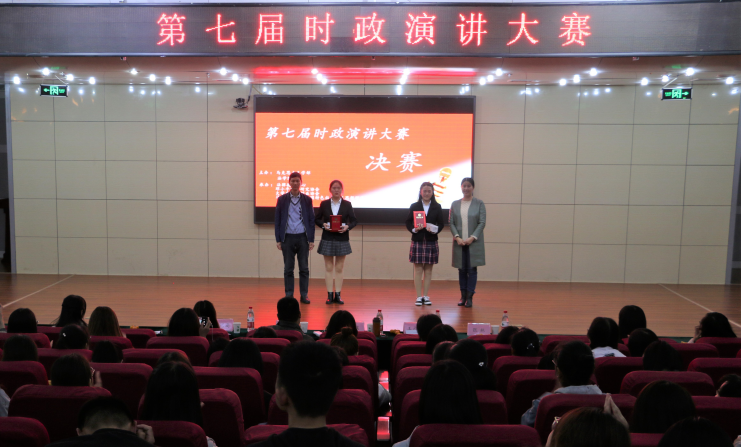 通过初赛的比拼,共有11名选手成功晋级决赛,赛制分为自选演讲和即兴演讲两个环节。赛前,DK舞社社员的曼妙舞姿激发了现场的热情,拉开了比赛的序幕,而后比赛正式开始。第一部分,一号选手王可心着眼于3·15晚会所揭露的辣条生产过程,以“小辣条”的口吻,从消费者、生产者、政府三个方面分析食品安全卫生问题,见地深刻、发人深醒。二号选手朱玫晓以校园霸凌为主题,将电影悲伤逆流成河与我们现实生活中的案例相结合,探究校园霸凌的与道德水平的关系,强调要抓好青少年价值观教育,营造安全的学习环境。第一环节结束由评委老师对参赛选手进行打分,分别选出王可心、朱玫晓、邵莹雪、张春凤、刘子瑜、国江南六名选手进入题目为“结合孟晚舟事件,你认为中国为什么要打赢5G攻坚战”的即兴演讲环节。最后,比赛在观众热烈的掌声中落下帷幕。