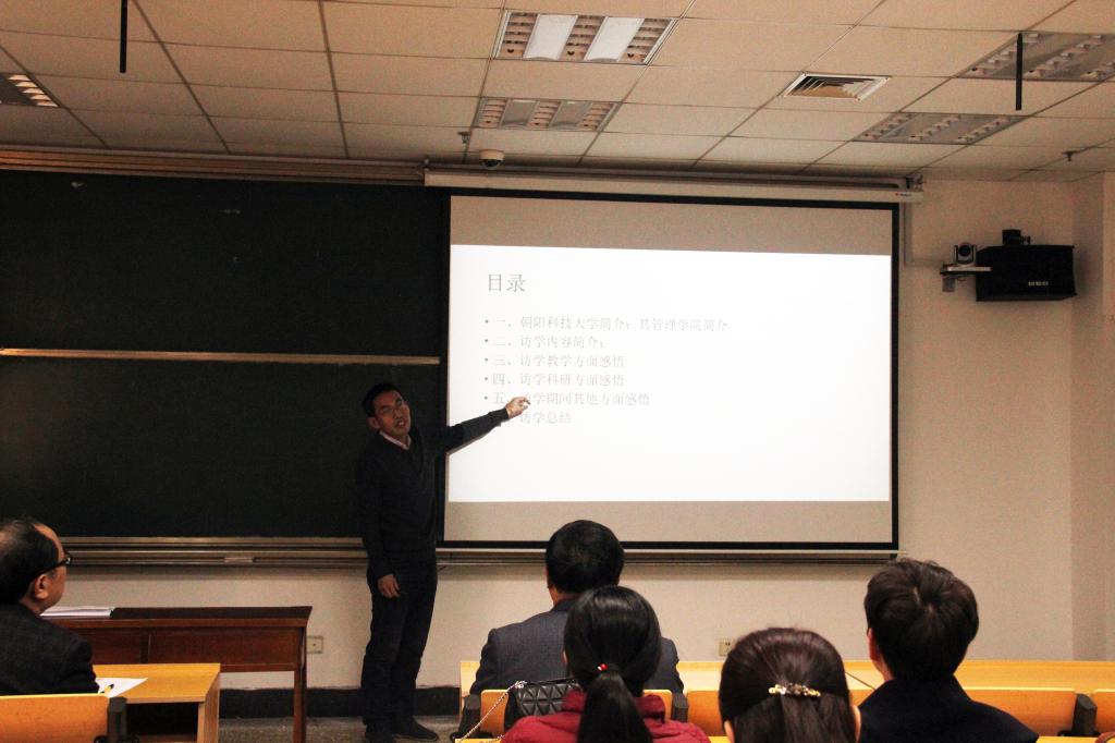 本次交流会由青年教师李培挺分享他在台湾朝阳科技大学管理欧冠直播平台