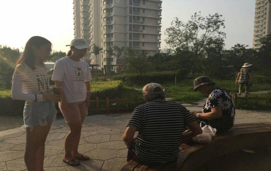 7月14日,经纬团队首先来到董家滩社区进行关于熟人社会的预调查活动,初步探究社区居民关系发展现状。时近傍晚,许多小区内的居民纷纷下楼,在楼底下、小区内的公园聊天、散步,团队成员简单地表明身份,趁着人们乘凉的机会很快与居民们相熟。在与居民深入交流的过程中,有居民这样说道,“我在这里居住了十几年,楼道对面生活的那家人的情况还是不清楚,我不知道他们名字,也不知道他们家里有几口人。”而究其原因,很多居民都反映到:“平时要工作,没有时间和大家交流呀!”白天工作见不到,在家时不想出来,又不好意思邀请别人到家里来——这是很多小区住户常有的体会。城市化进程中的人口高流动性,小区内狭小封闭的居住环境使得隐私感的加强,以及人们之间爱好、工作方式的不同都加剧了居民之间的疏离,邻里之间重新熟起来似乎阻碍重重。