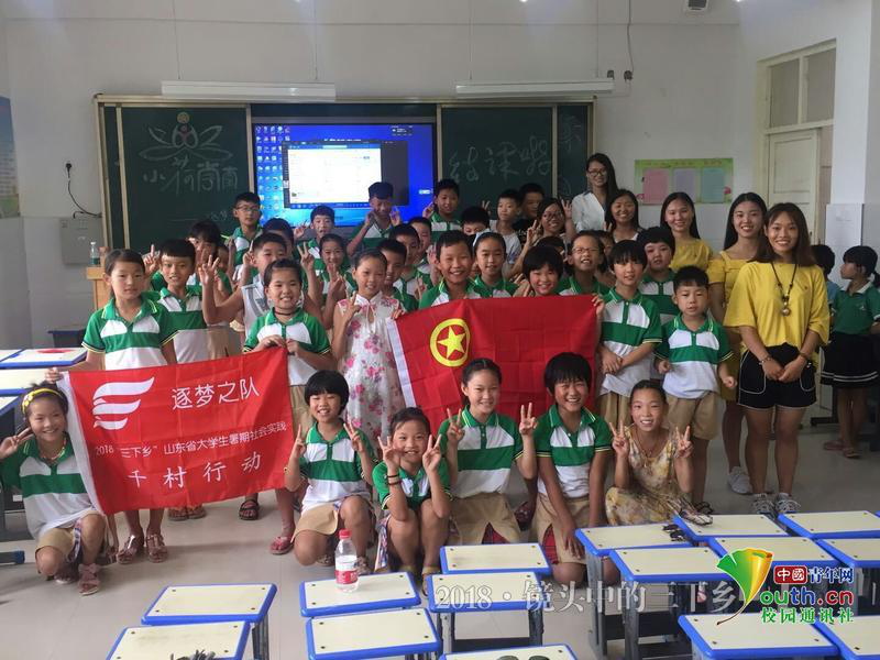 图为“逐梦支队”与曹县桃源镇中心小学“小荷学堂”学员的合影。中青网通讯员孙淑俊提供