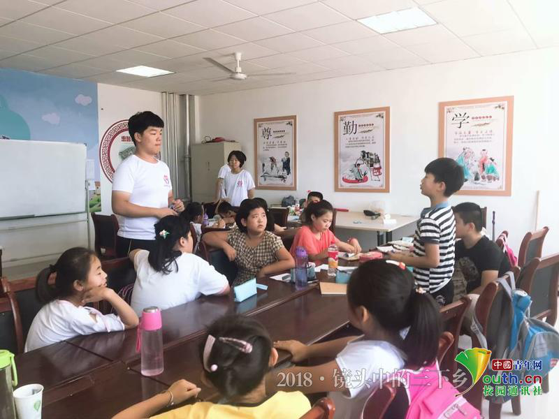 支教适逢八一建军节,队员们希望学生们从小树立正确的三观,热爱祖国,铭记历史。队员王星普、陈金珠以八一建军节为契机,带领学生观看共青团上传的“中国军—到”视频,以“我想对英雄说”为演讲题目,让同学们表达自己爱国情感,两位队员在学生朗读的过程中纠正他们的发音,起到一举两得作用;队员金志超以东营当地历史文化为背景,向同学们讲述东营的红色历史,让同学们在老一辈的革命历史中感受到先辈们的奋斗历史。“我觉得爱国教育要从小抓起,孩子们对英雄的理解就仅次于课本上的雷锋、王二小以及我们的其他国家领导人,对其他的民族英雄和身边的平凡英雄并不知道,这是很不应该的,我们希望通过这次演讲,让他们多了解英雄事迹,从小就有一颗爱国心”队员王星普如是说。