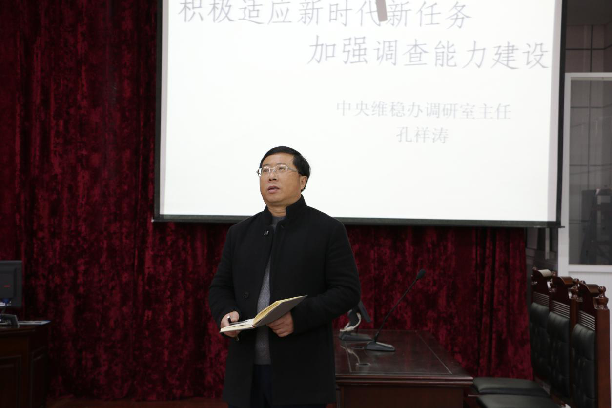 研究生做题为《积极适应新时代新任务,加强调查能力建设》的学术报告,报告王维先院长主持。