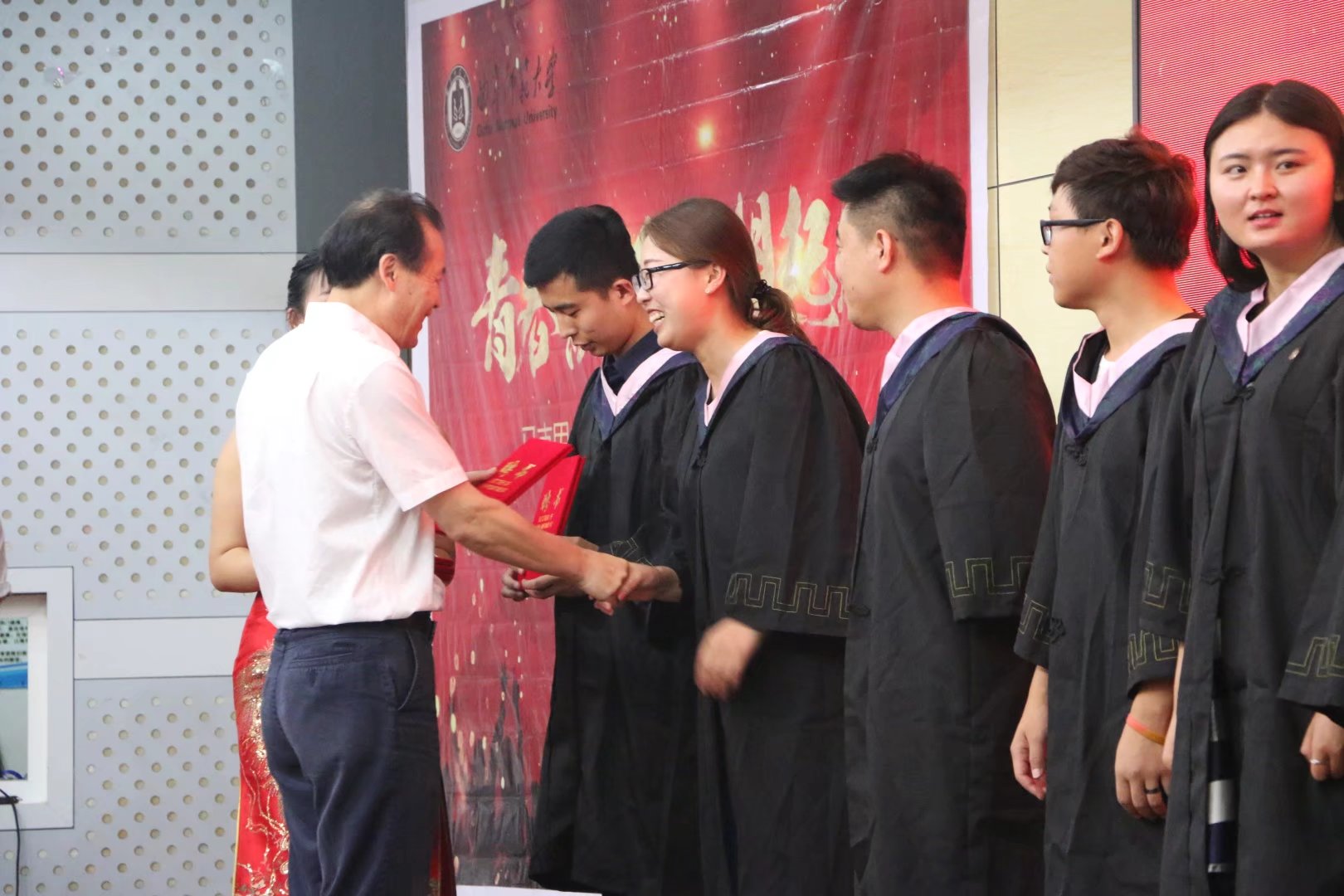 获得学位的毕业生授予学位、拨穗及合影留念。伴随着深情的谢师礼,学部2017届本科生毕业典礼暨学位授予仪式在热烈的掌声中圆满结束!