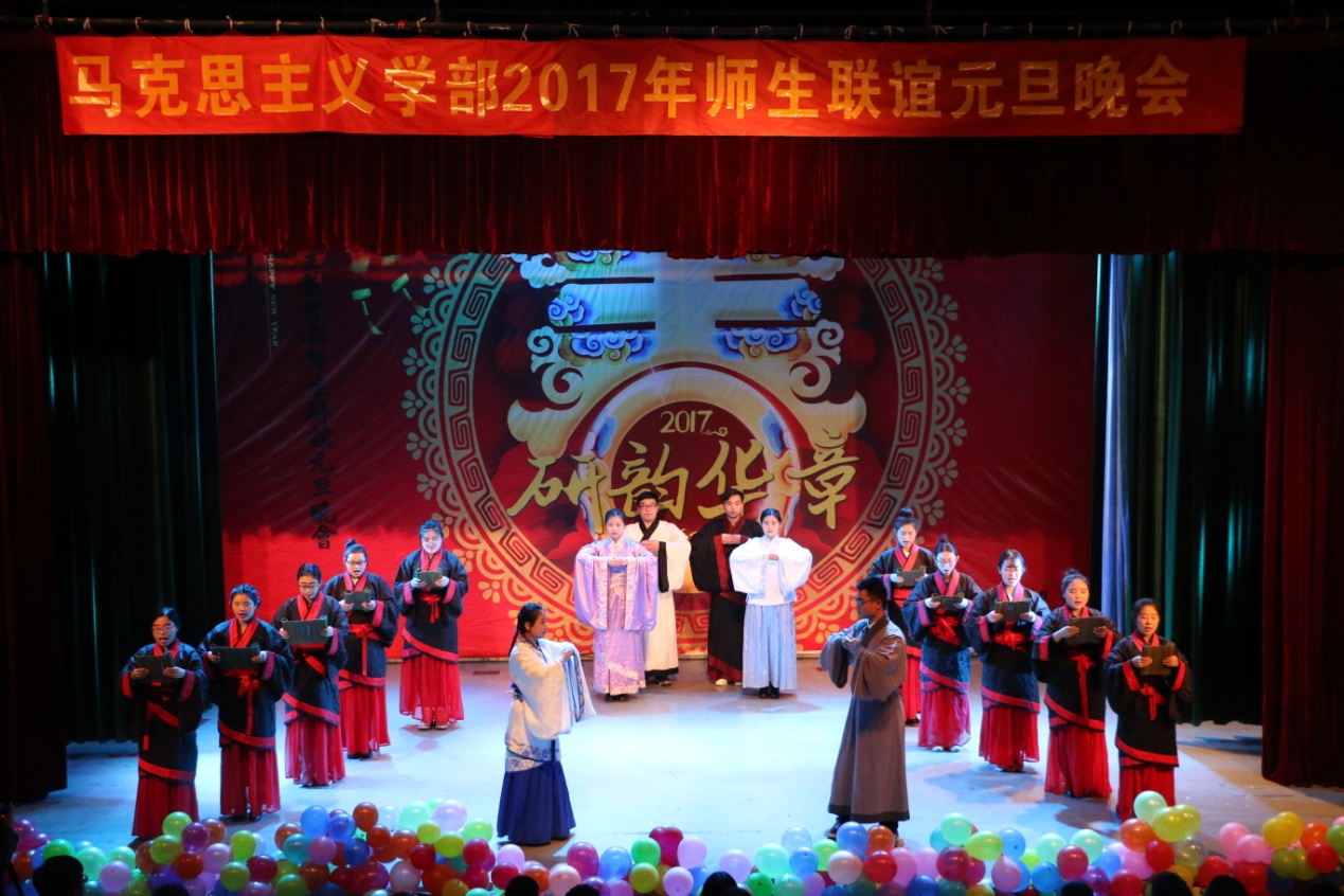 副院长孙迪亮、周智等领导、老师及全体研究生共享这场青春盛宴。马克思主义学部党委书记张立兴作新年致辞。