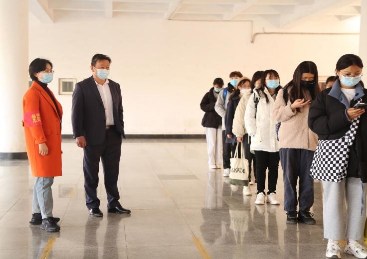 领导召开各类疫情防控工作部署会议,解读政策要求,压实责任并层层落实,创新管理方式,设置网格员,密切追踪学生动态,做到精准施策。党委书记卢瑞霞亲临防疫一线参与疫情防控、督导志愿服务。教工党员精准细致进行疫情防控期间学生服务管理,准确摸排学生信息,第一时间走访学生宿舍、教室和核酸检测现场,细心叮嘱同学们疫情防控有关要求、坚持做好班级课堂考勤、通过网格化管理落实宿舍晚点名和帮助志愿者查验健康码等,与同学们共同奋战抗疫一线。