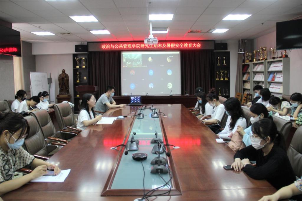 于JC909会议室召开研究生期末考试及暑期安全教育大会,研究生辅导员徐莉出席本次会议,2020级、2021级全体学术型研究生积极参加,部分研究生线上参会。
