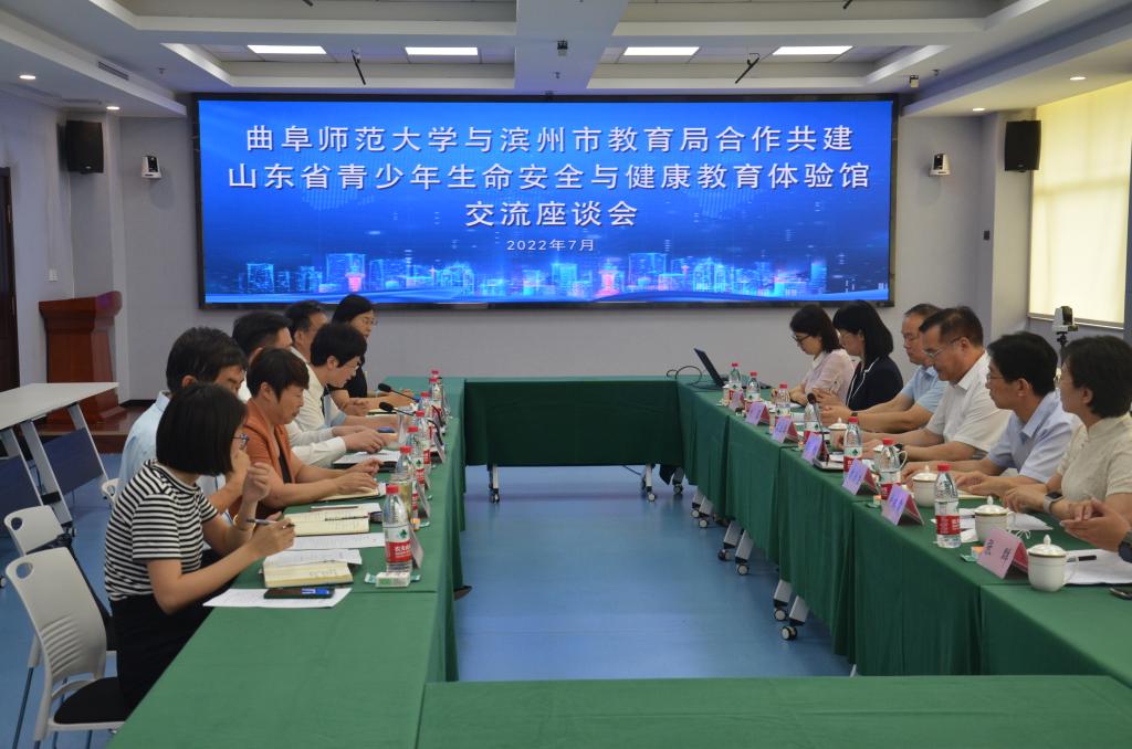 7月13日,曲阜师范大学与滨州市教育局合作共建山东省青少年生命安全与健康教育体验馆交流座谈会在滨州召开。滨州市委常委、副市长、市政府党组成员,市教育局党组书记、局长屈跃宽,学校党委常委、副校长陈刚,山东省教育厅学校安全管理处处长魏治法、副处长姜业华出席活动,滨州市委教育工委副书记、市教育局党组副书记、副局长李美主持。曲阜师范大学山东省生命与安全教育研究中心、滨州市教育局相关负责人参加活动。