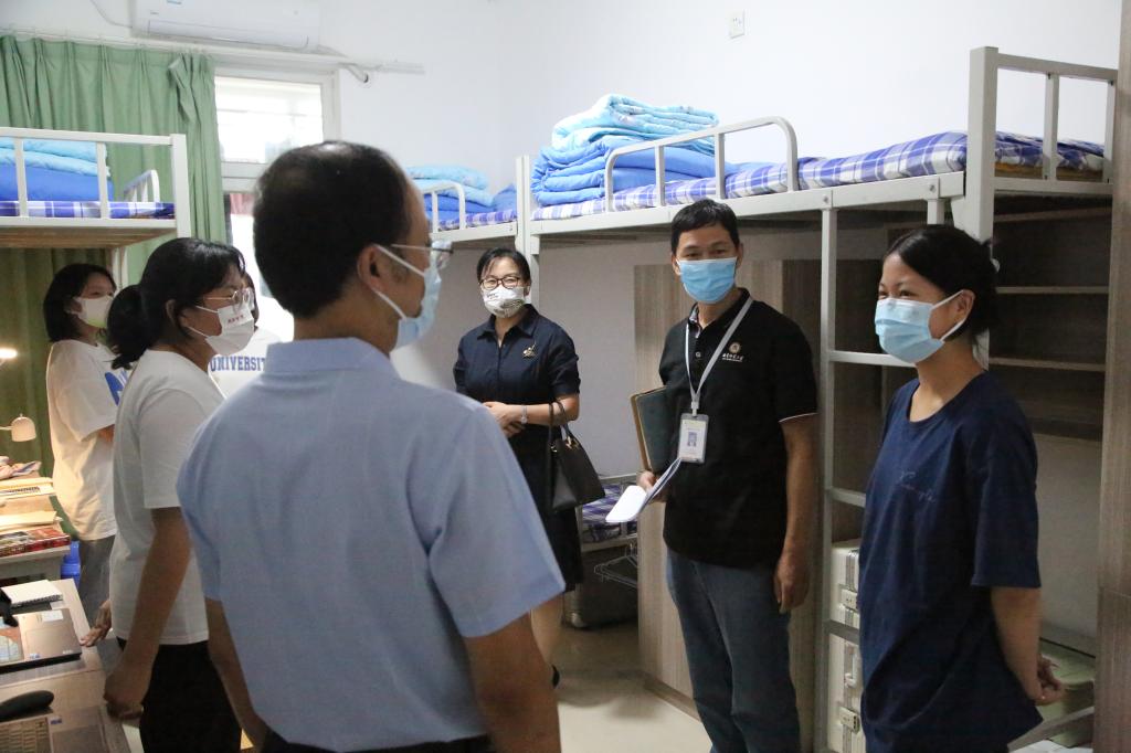 老师们每到一个宿舍便亲切地与新同学们交谈,详细询问新生的家庭情况和入学感受以及对即将开始的大学生活的期待。老师们表示,希望同学们尽快适应大学生活,制定目标,做好规划,开启新的篇章;同时提醒同学们要注意个人生命财产安全,安全用电,随手锁门,保管好个人财物;在疫情封校的情势下,要注意个人和寝室卫生。