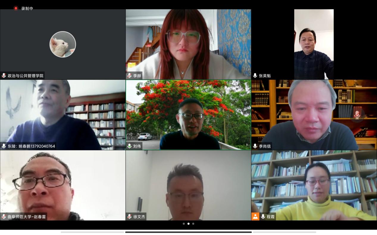 本次答辩会分为学位申请人汇报、答辩委员会成员提问、学位申请人答辩、答辩委员会评议、结果宣读五个部分。每位硕士研究生以ppt的形式,分别阐述论文选题背景、研究意义、研究方法、论文内容框架、论文创新点等内容。答辩委员会成员听取汇报后,逐一从论文摘要、理论基础、写作逻辑等方面进行细致点评,并对每一位学位申请人进行专业学术问题提问。随后,学位申请人按照提问顺序进行回答。紧张有序的答辩环节结束后,答辩会休会,各组答辩委员会经过评议和无记名投票表决进行论文等级评定和确定答辩结果。最后,答辩主席宣布答辩决议和投票结果,学生致谢并与答辩专家线上合影。