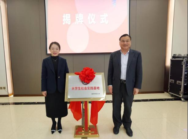 图为学校党委常委、副校长陈刚与淄博团市委副书记王琮为社会实践基地揭牌