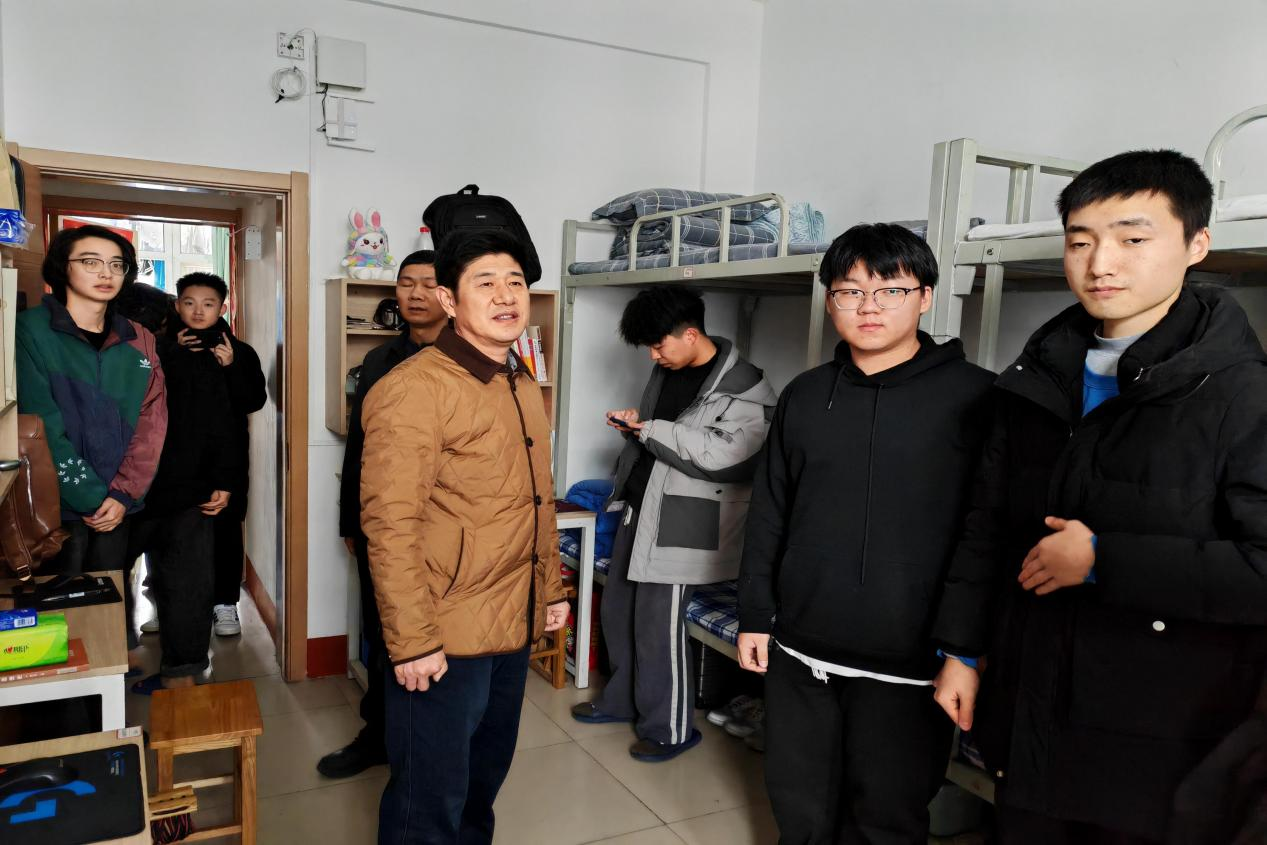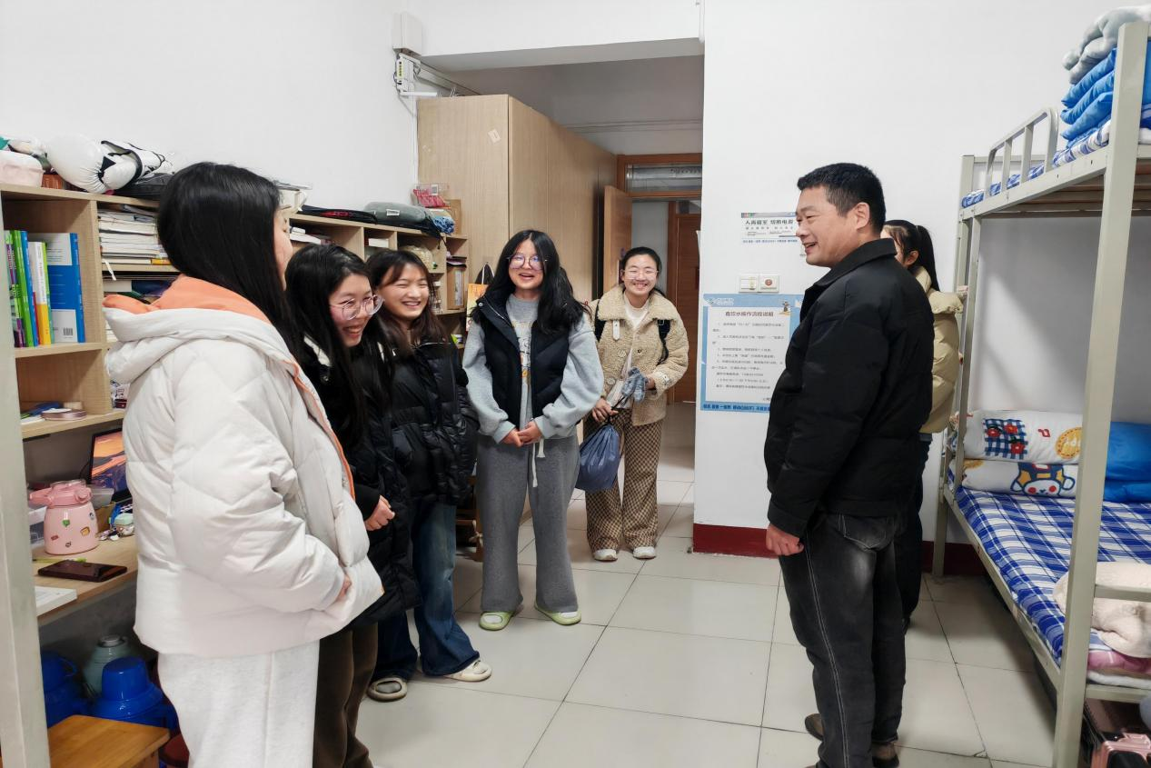 老师们深入学生宿舍,就宿舍安全卫生进行细致检查,排查安全隐患。赵秀臣老师细心的询问了学生日常生活状况,宿舍的水电使用情况,提醒同学洗手盆水管破裂及时报修,鼓励同学们在新学期合理规划,锐意进取,叮嘱同学们要注意用电安全,保持宿舍卫生,共同维持良好的生活环境。