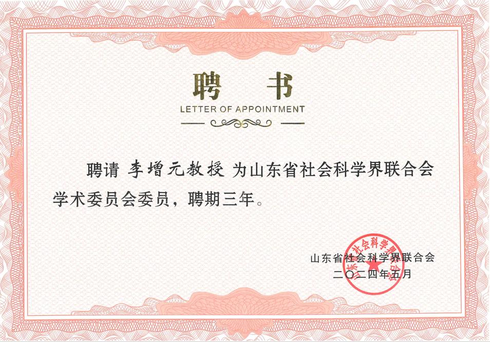 李增元教授应邀参加并受聘为山东省社会科学界联合会学术委员会委员。