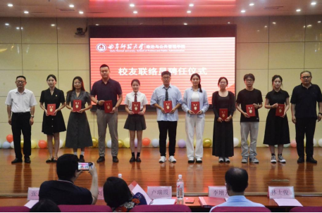副院长林士俊、刘伟为校友联络员颁发聘书。