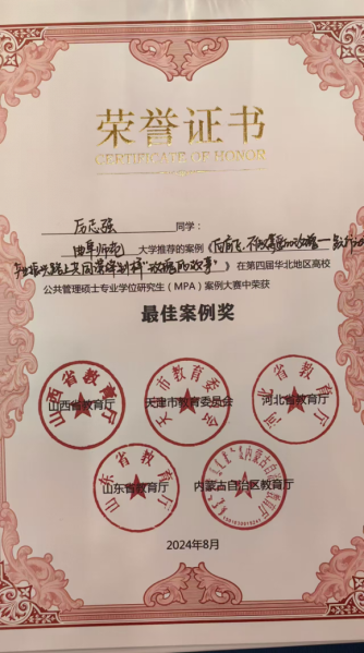 2023级MPA研究生姜帅荣获大赛“最佳表现奖”