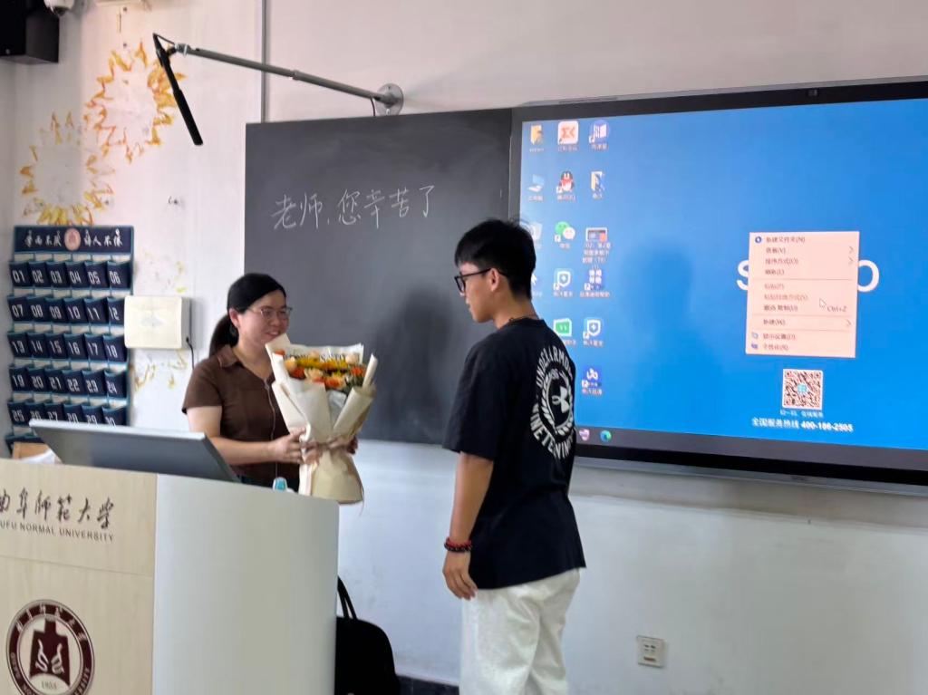 “老师,您辛苦了!祝您教师节快乐!”一声声真挚的问候在教室里回荡。朵朵鲜花娇艳芬芳,承载着学生们对老师辛勤耕耘、无私奉献的崇高敬意和衷心感谢。