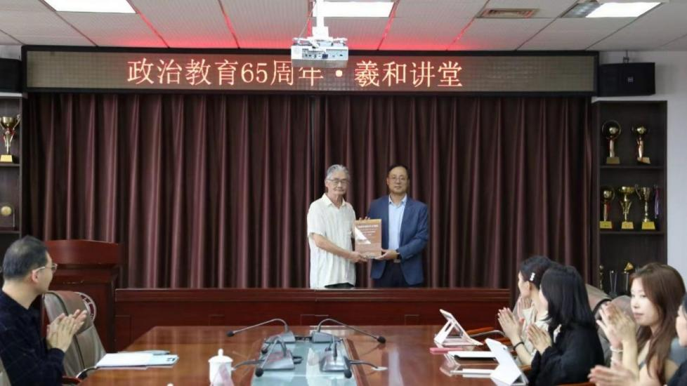向罗国祥教授赠送海报纪念摆台,罗国祥教授现场为讲座海报签名,该签名海报将作为“義和讲堂”名家记忆存档,为欧冠直播平台